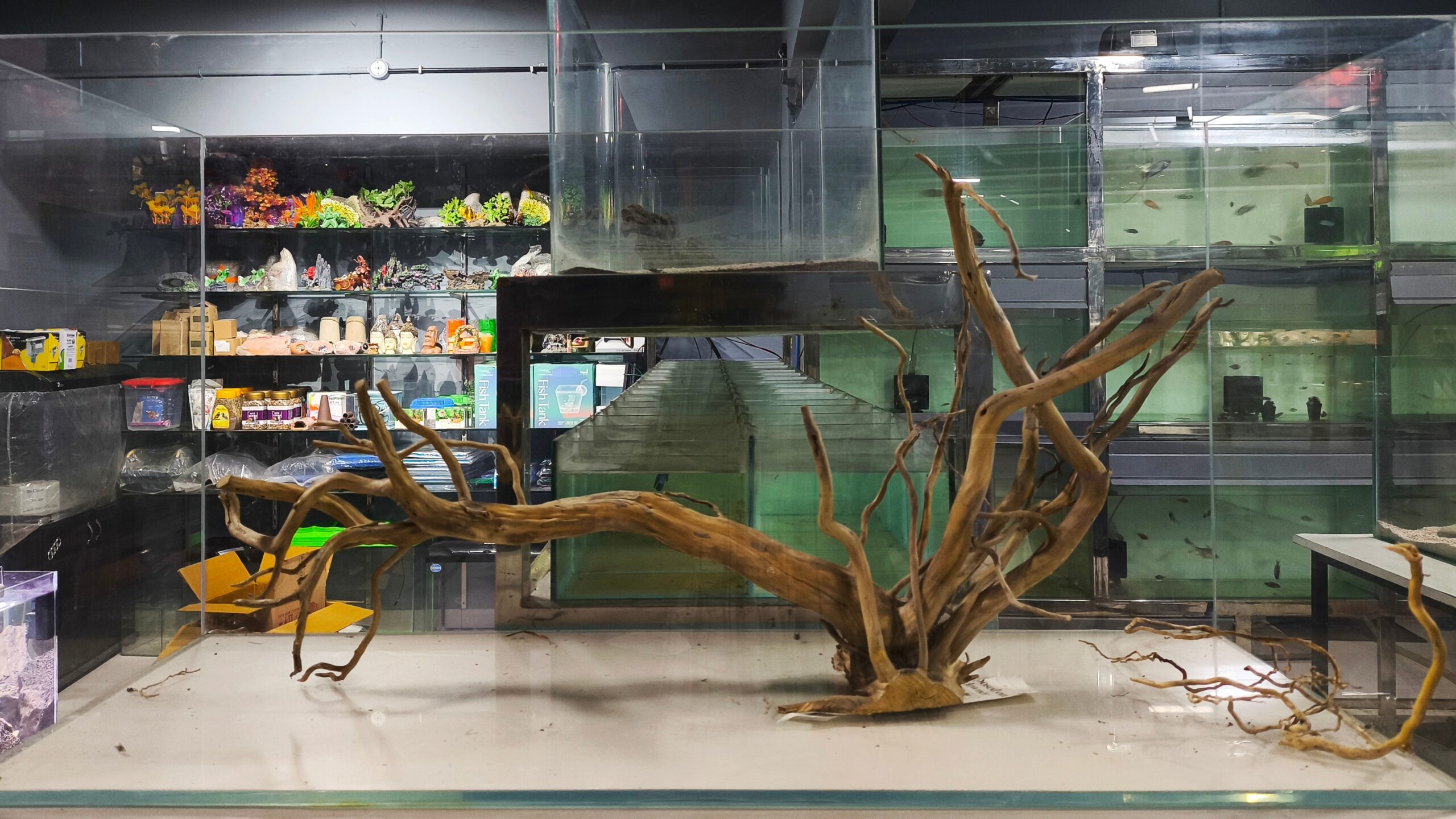 Intricately shaped spider wood ideal for dynamic aquascaping layouts. Its branching design creates a natural focal point and provides shelter for aquatic life.